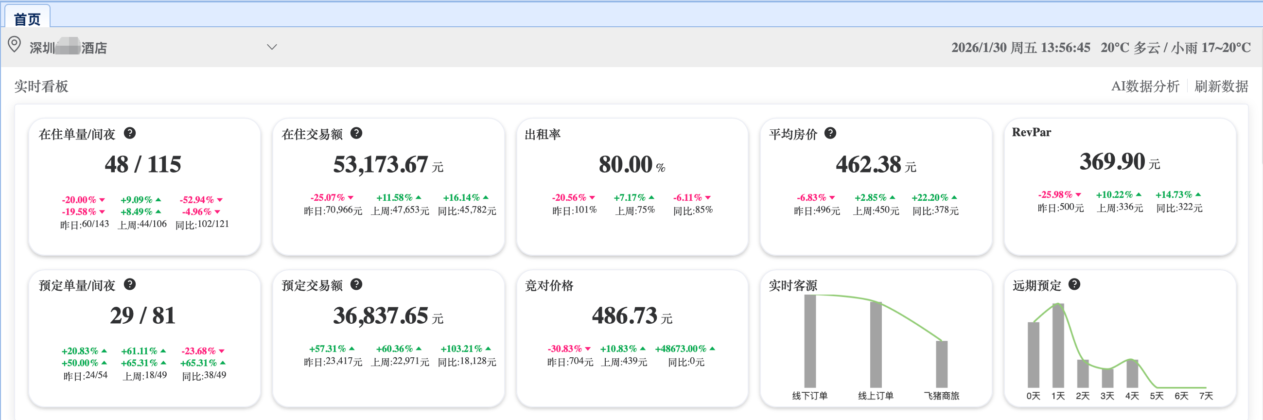 我们是一家小体量酒店,且在竞争非常激烈的商圈,以前用手工做收益管理时,需要人工查看竟对 ,调价,经常出现低价满房,高价空房的情况,现在用了收益管理系统,系统自动实时的抓取竟对 ,通过数据分析,预订增速,让我们的收益管理更从容且收益增长实现了收益最大化。